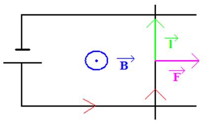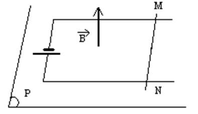Pile : E = 4.5V ; r= 1W Résistance du barreau R = 1 W B = 50 mT MN = 25 cm. |