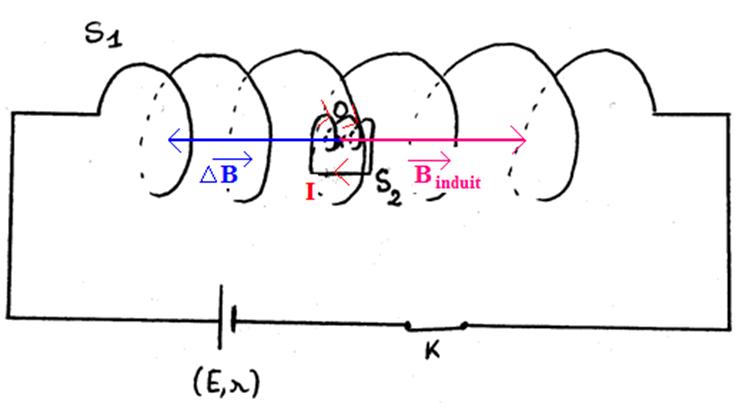On en déduit le sens de I dans la bobine S2 sur le schéma suivant :