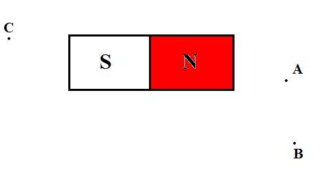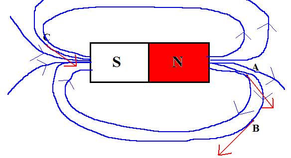 que des vecteurs champs magnétiques et des boussoles aux points A, B et C du
