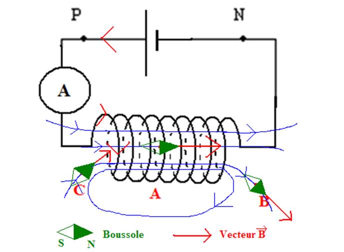 magnétique au centre du solénoïde grâce à la règle du tire-bouchon. On en