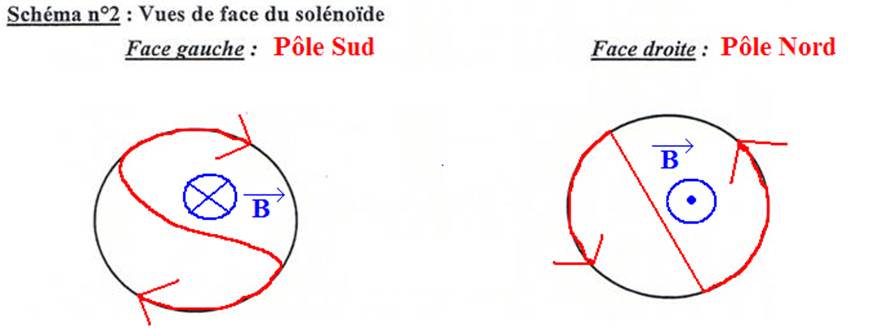 magnétique correspondant à chacune des faces du solénoïde et le sens du vecteur