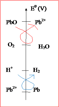 avec l’eau (gamma rouge), et que celle en plomb peut réagir avec les ions H+